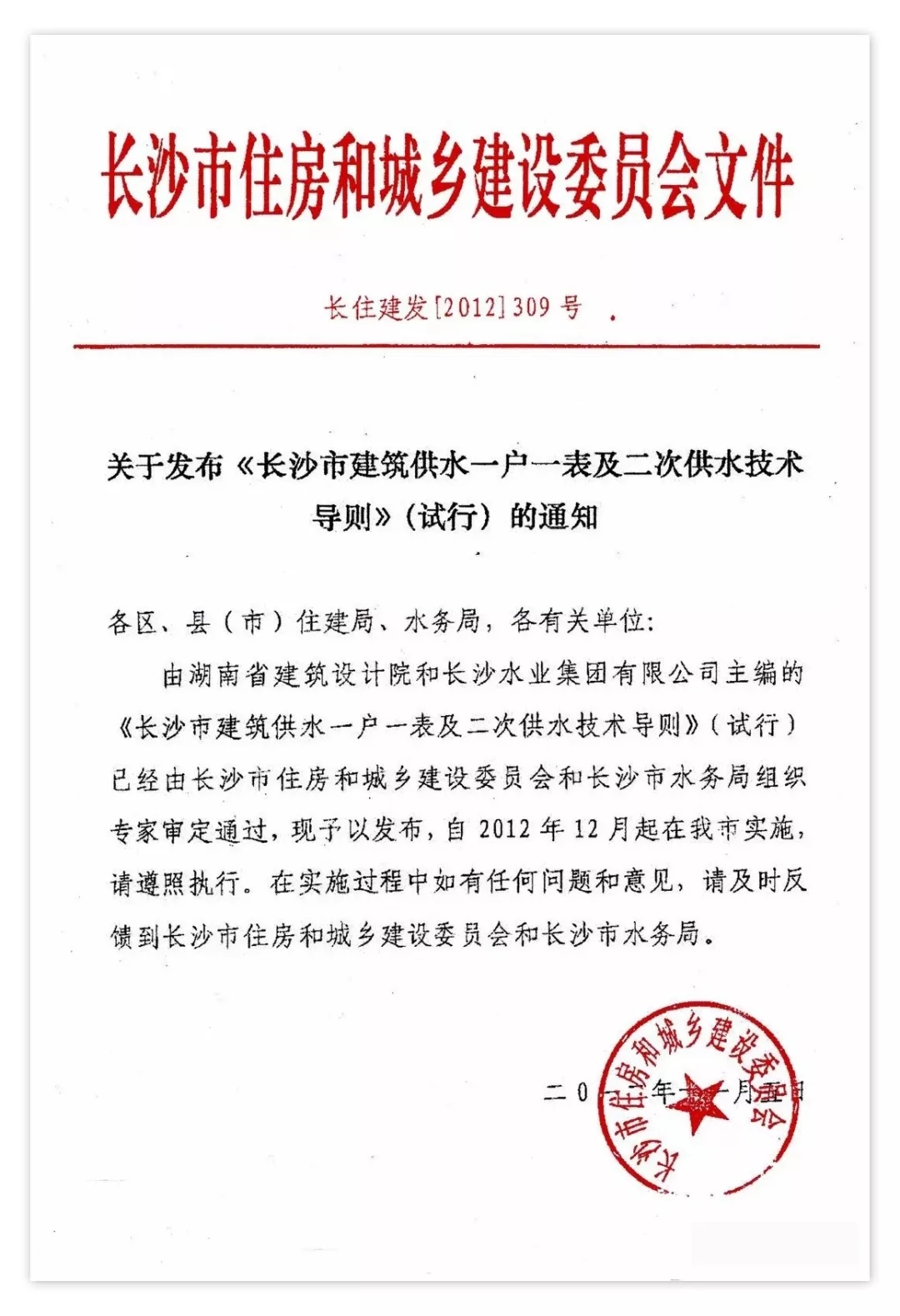 為進一步提高供水水質(zhì),提高市民的健康生活水平,長沙市住房和城鄉(xiāng)建設(shè)委員會修訂了住宅供水技術(shù)導(dǎo)則文件。