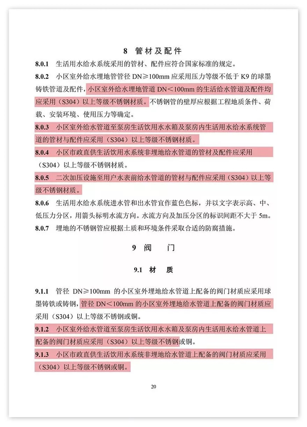 長沙市住宅供水技術(shù)導(dǎo)則仲明確指出,住宅供水中使用的管件與管材、閥門及其他附件材質(zhì)必須使用(S304)等級以上不銹鋼或銅。